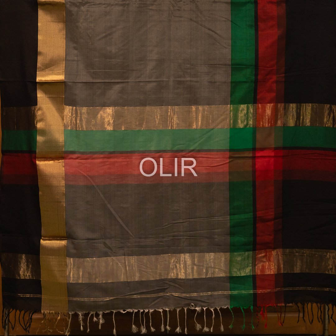 Charcoal Grey Silk Blend Saree with Multicolor Pallu