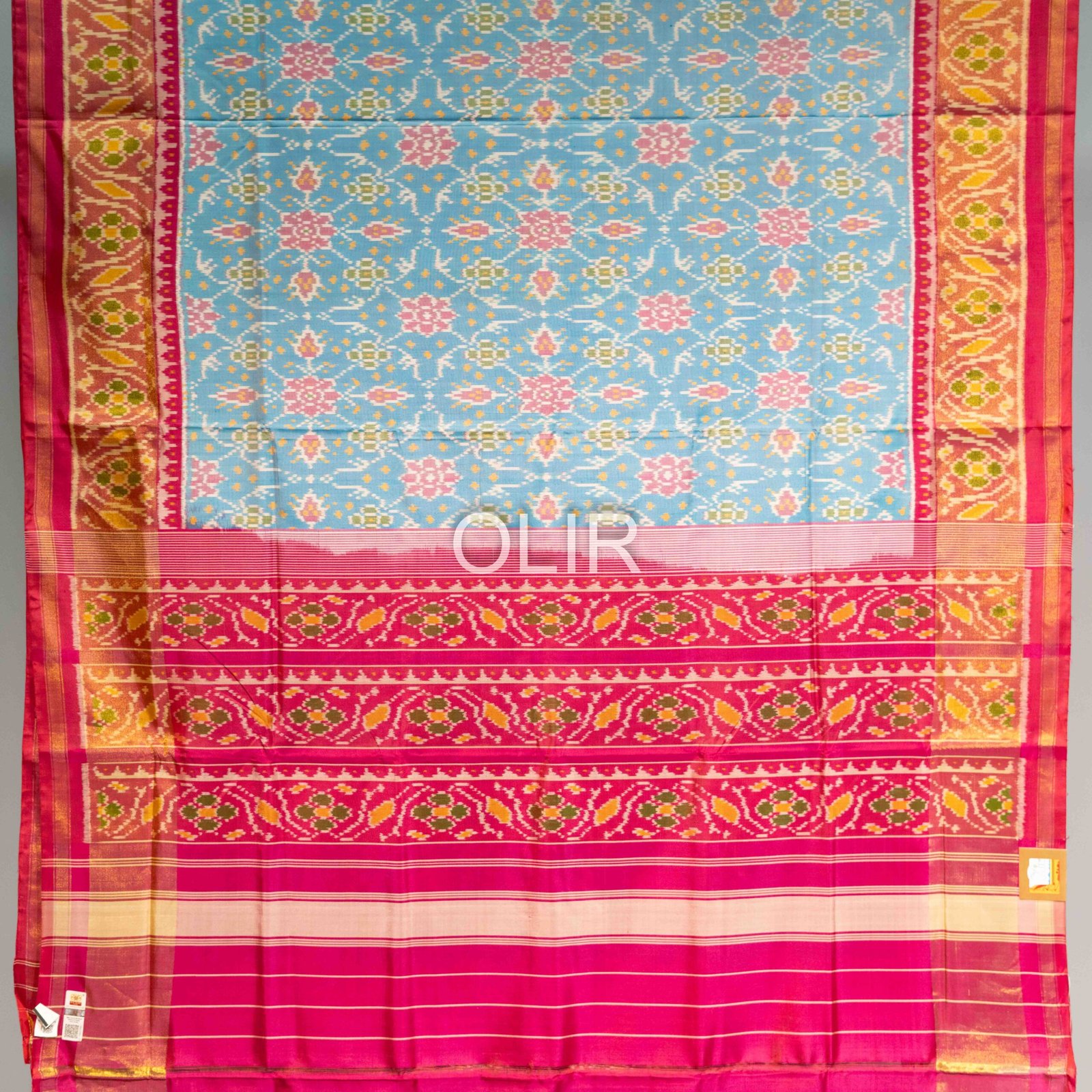 Be the first to review “Copper Sulphate Blue with Pink Pure SIlk Patola Saree”