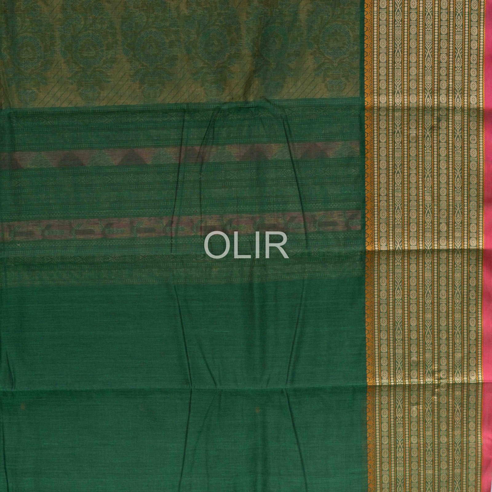 Dark GreeN with Pink Bomkai design Kanchi Cotton Saree
