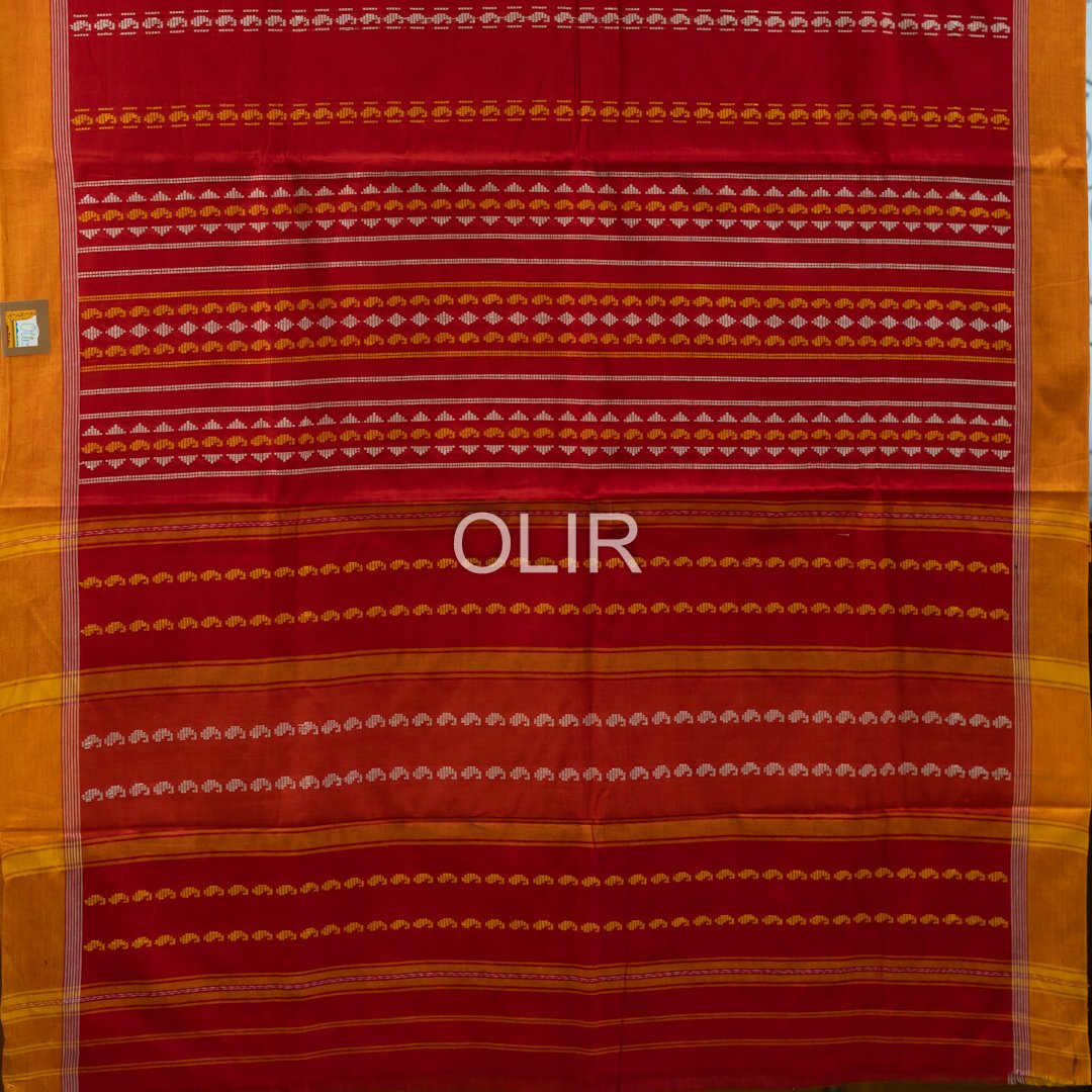 Vibrant and traditional, this Red Dhonekali Cotton Saree features intricate woven patterns across the body with a mustard border that enhances its classic appeal. Despite its rich look, the breathable cotton fabric makes it suitable for daily wear as well as casual traditional occasions.