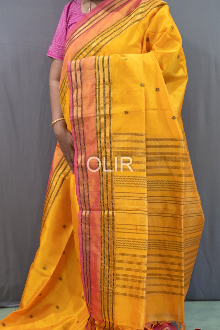 Elegant saree with fine threadwork and rich pallu.