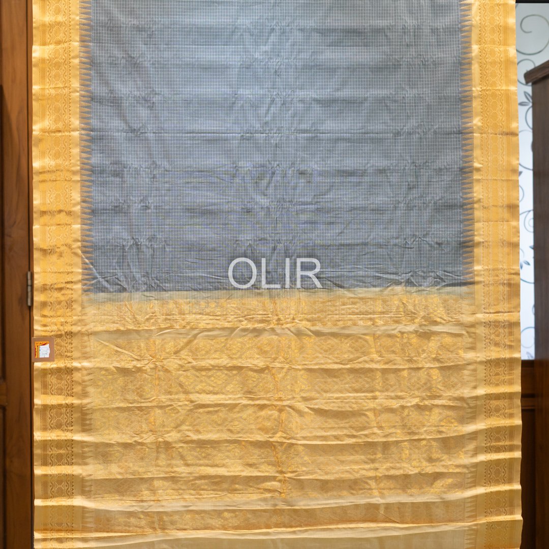 Silver Grey with Beige Semi Silk Border and Pallu handwoven Gadwal Cotton Saree