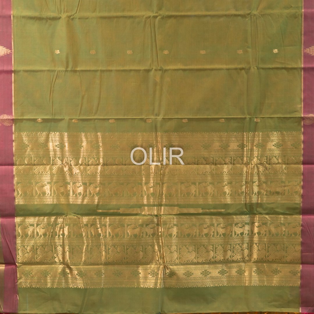Leaf Green with Red border Kanchi Cotton Saree