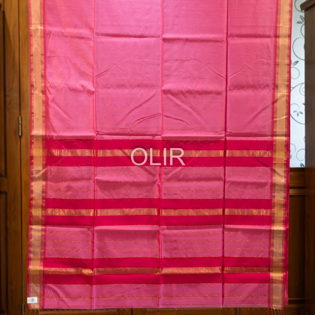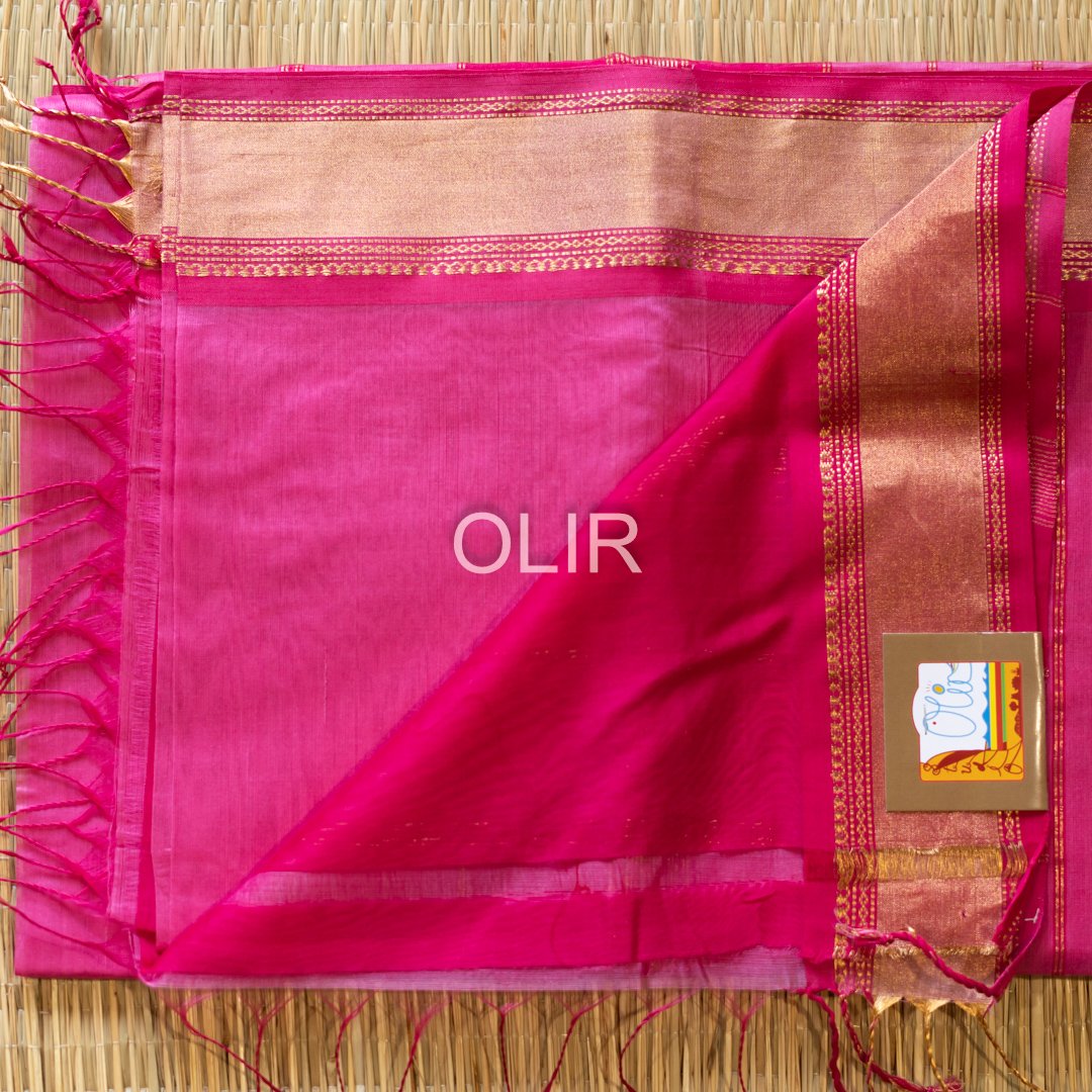 This lotus pink tissue saree is crafted in premium Maheshwari Silk Cotton,
