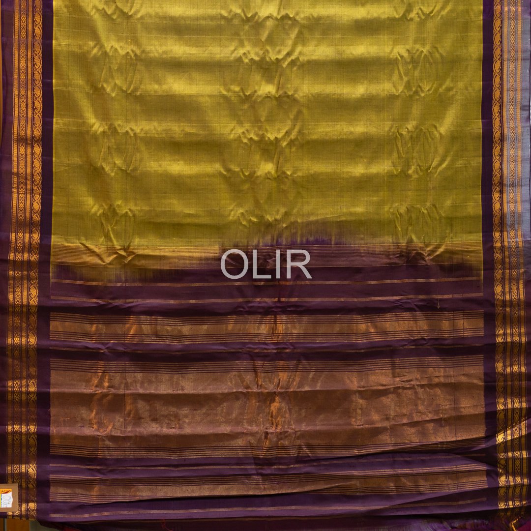 Mehendi Green with Jamun Border Gadwal Cotton Saree with Semi Silk Pallu and Border Handwoven Gadwal Cotton Saree