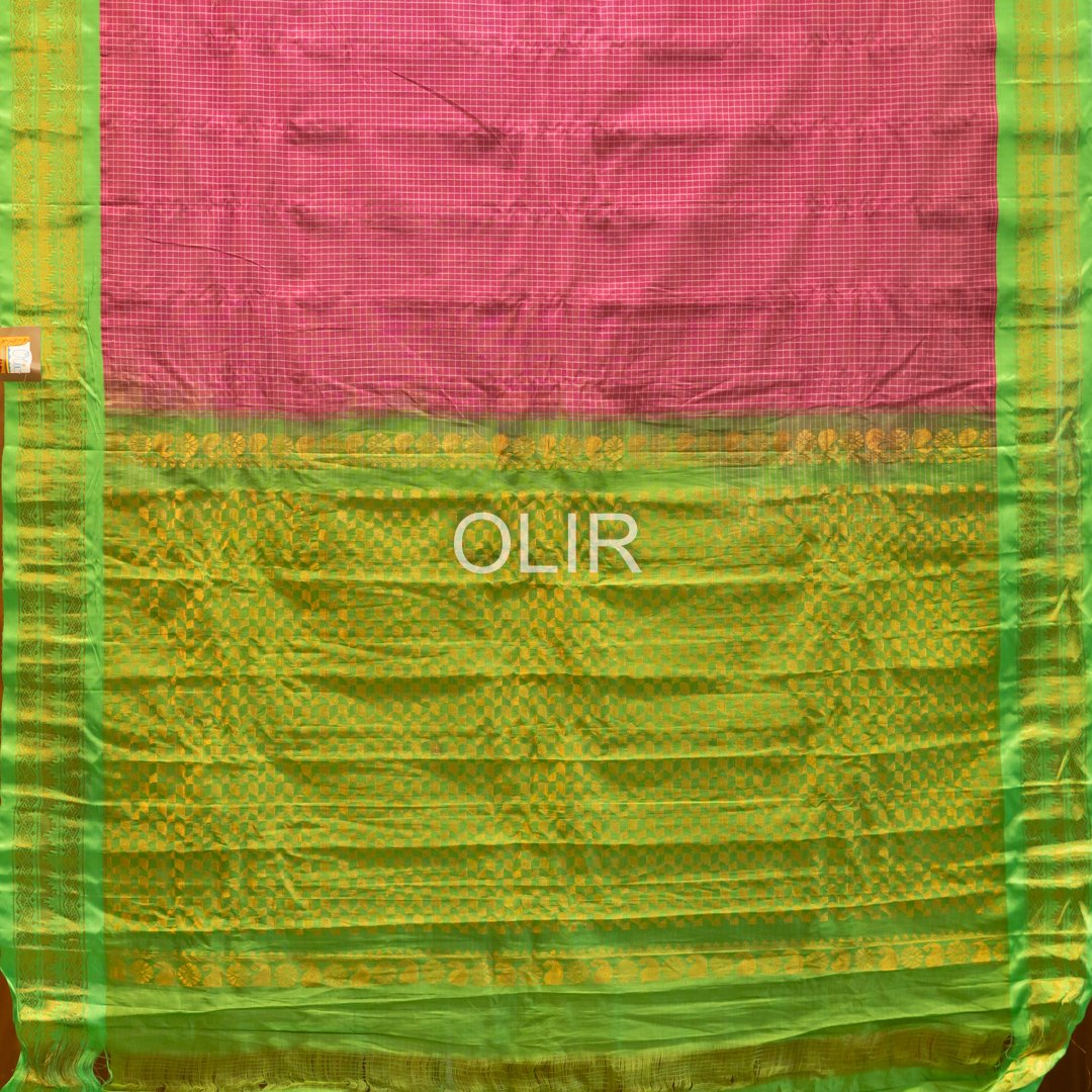 Pink with Green Semi Silk Zari Border Kuttu Weaving Gadwal Cotton Saree