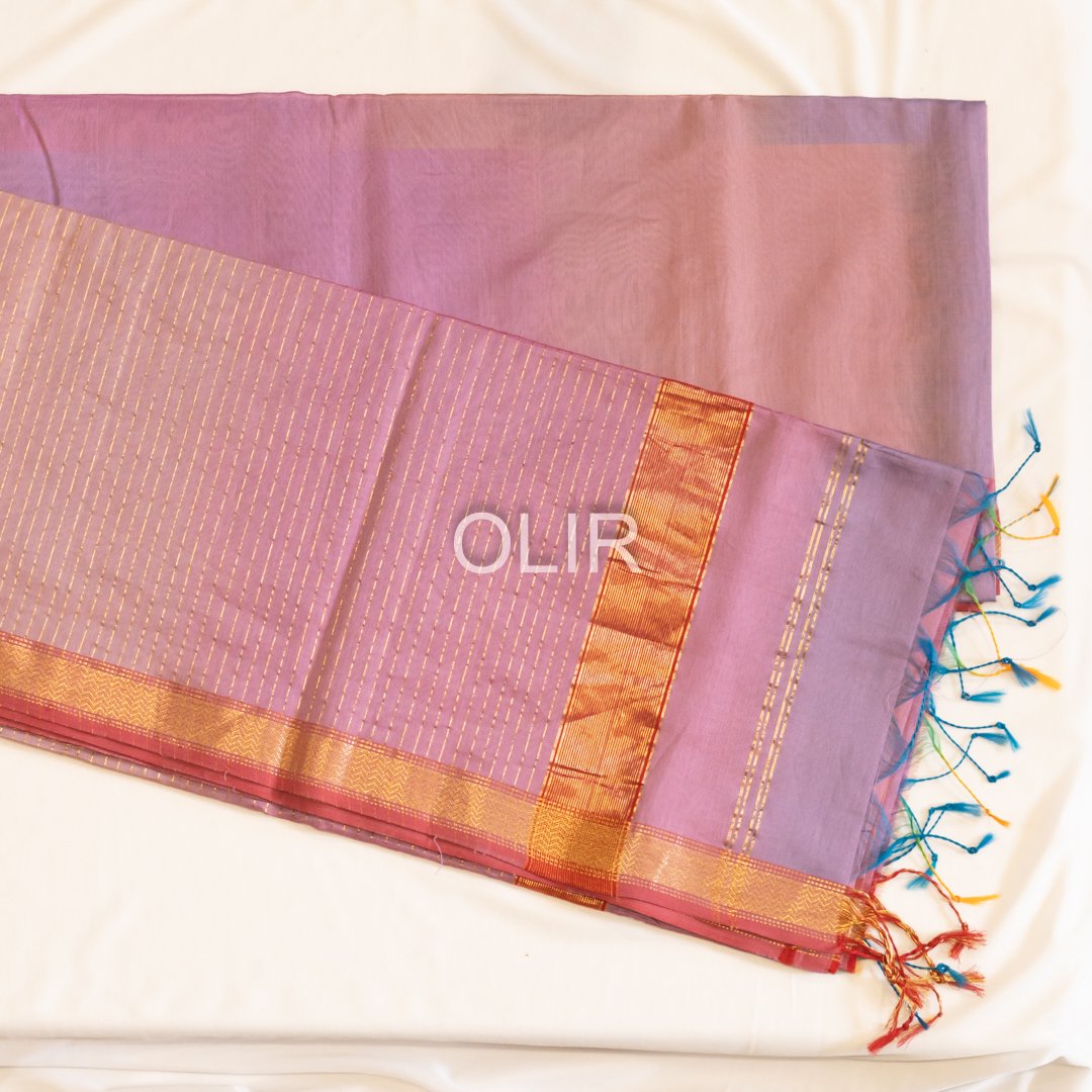 This tricolor pink lavender blue shaded saree is crafted in premium Maheshwari Silk Cotton,