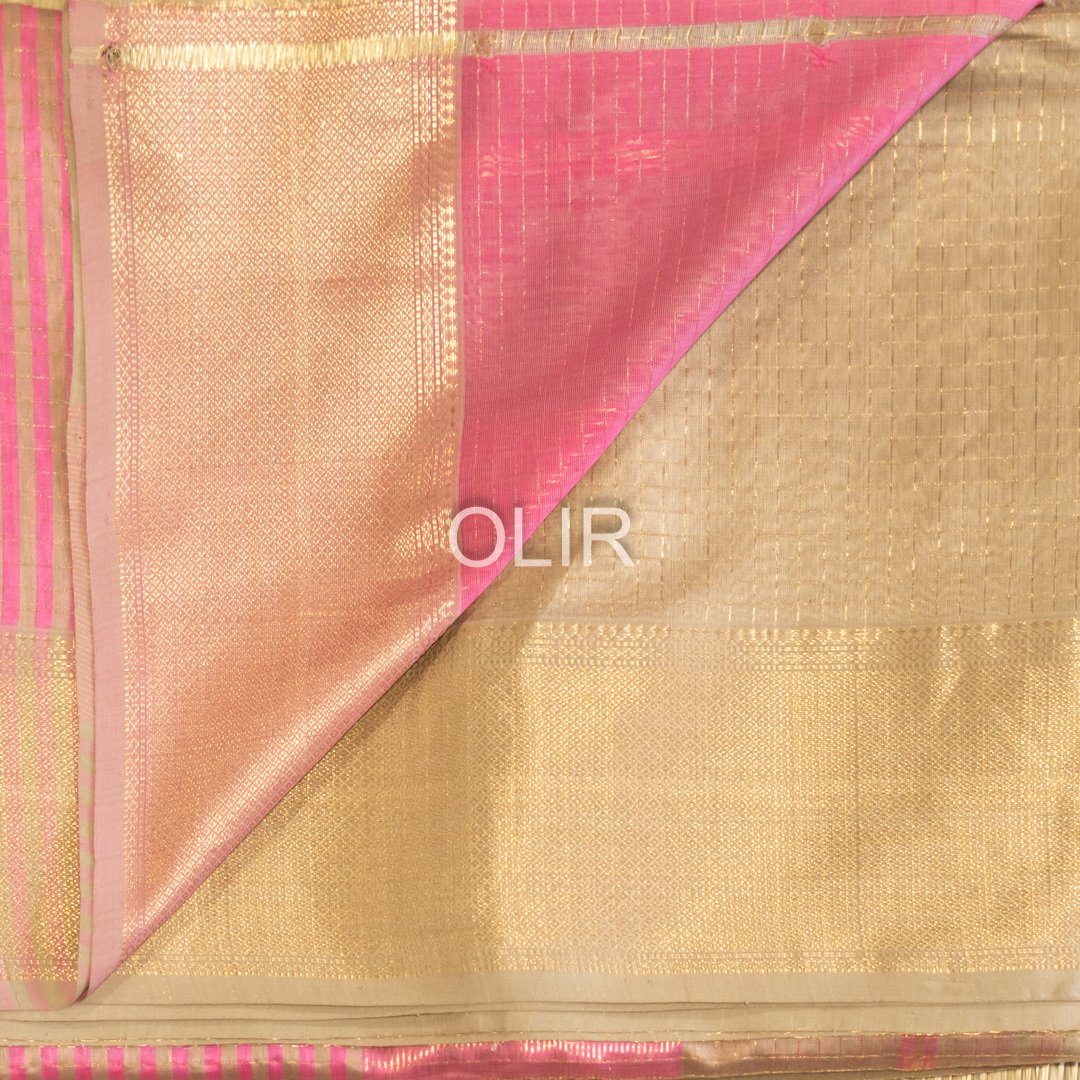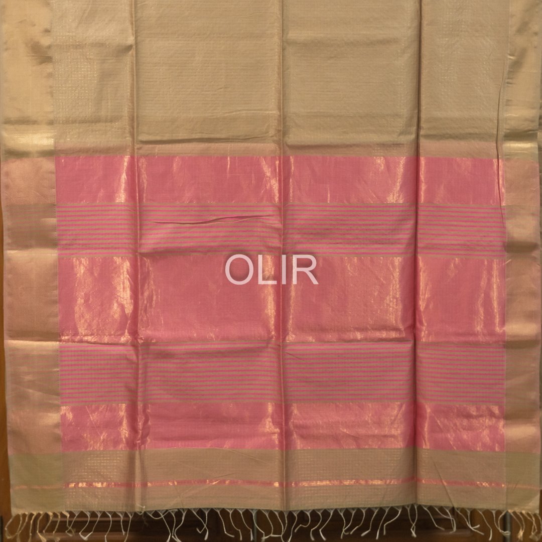 Tussar Kota Checks Saree with Rose Pink Pallu