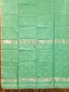 This Peach handwoven Maheshwari Silk cotton saree is adorned with a Silver zari-woven border. The body features Silver Meenakari flower buttas woven in zari. The grand zari-rich Silver tissue pallu adds a royal touch to the saree.
